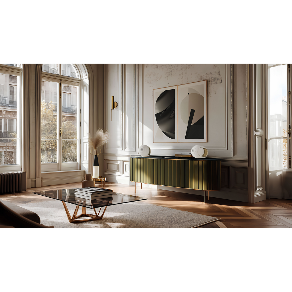 Pour les pièces plus compactes ou pour une diffusion audio haut de gamme dans des espaces moyens, la Devialet Phantom Ultimate 98 dB constitue une excellente alternative. Elle offre la même signature sonore premium dans un format légèrement moins puissant, parfaitement adapté aux salons, bureaux ou espaces de taille moyenne.
